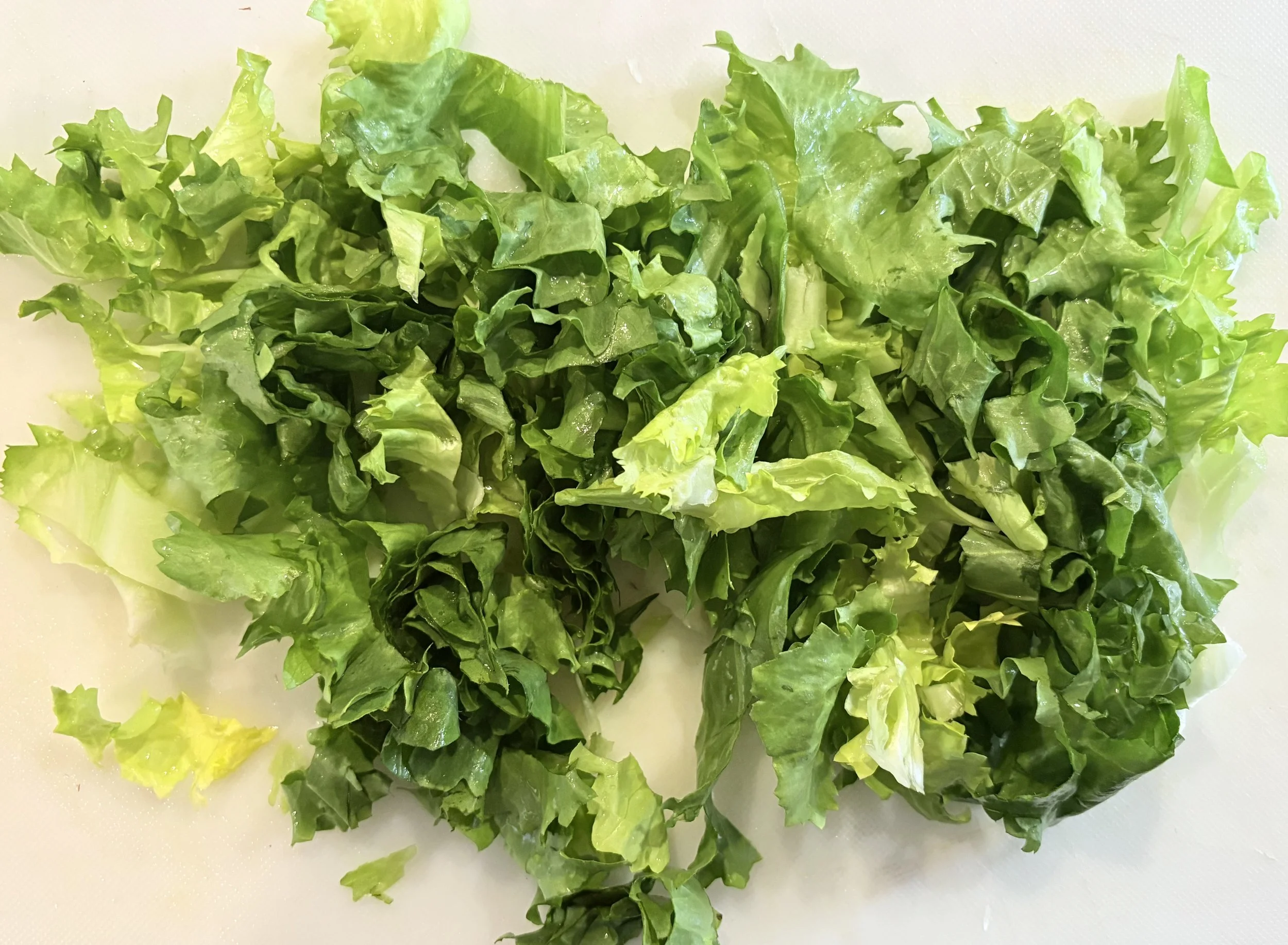 While the rice simmers, chop the escarole into coarse pieces. We always use lots of escarole, as it reduces in size during cooking.